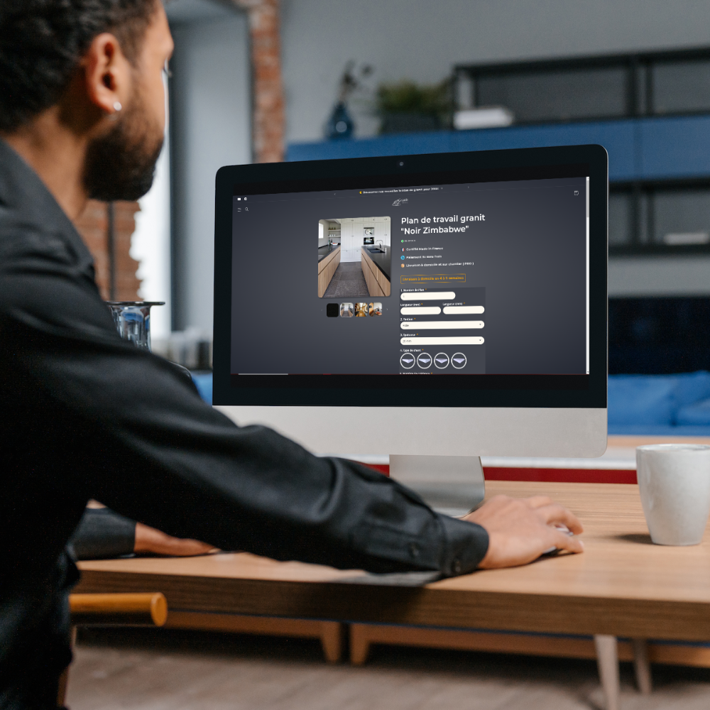 Pas de surprise, avec GranitGallery, obtenez un devis en ligne en fonction des dimensions souhaitées pour votre plan de travail. Simple, transparent et efficace.