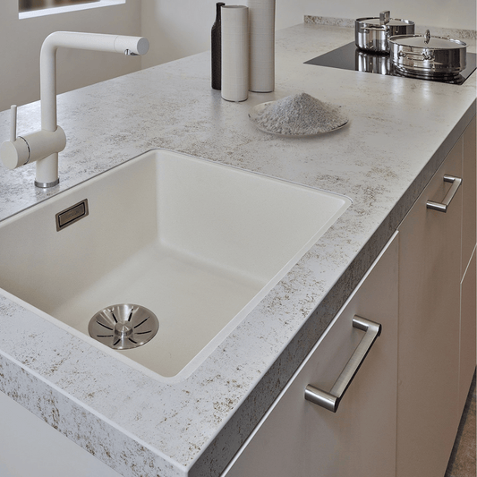 Un plan de travail en céramique est non seulement non poreux et résistant aux rayures, aux taches, et à la chaleur, mais il est également facile à entretenir. Ce matériau est idéal pour une utilisation quotidienne intensive.