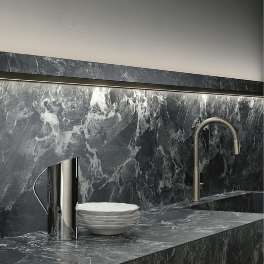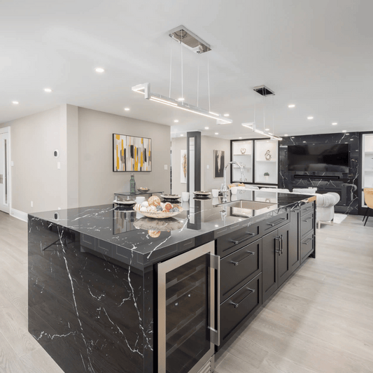 Le plan de travail effet marbre combine l'élégance visuelle du marbre naturel, comme le blanc de Carrare ou le noir profond, avec la durabilité et la facilité d'entretien des matériaux modernes.