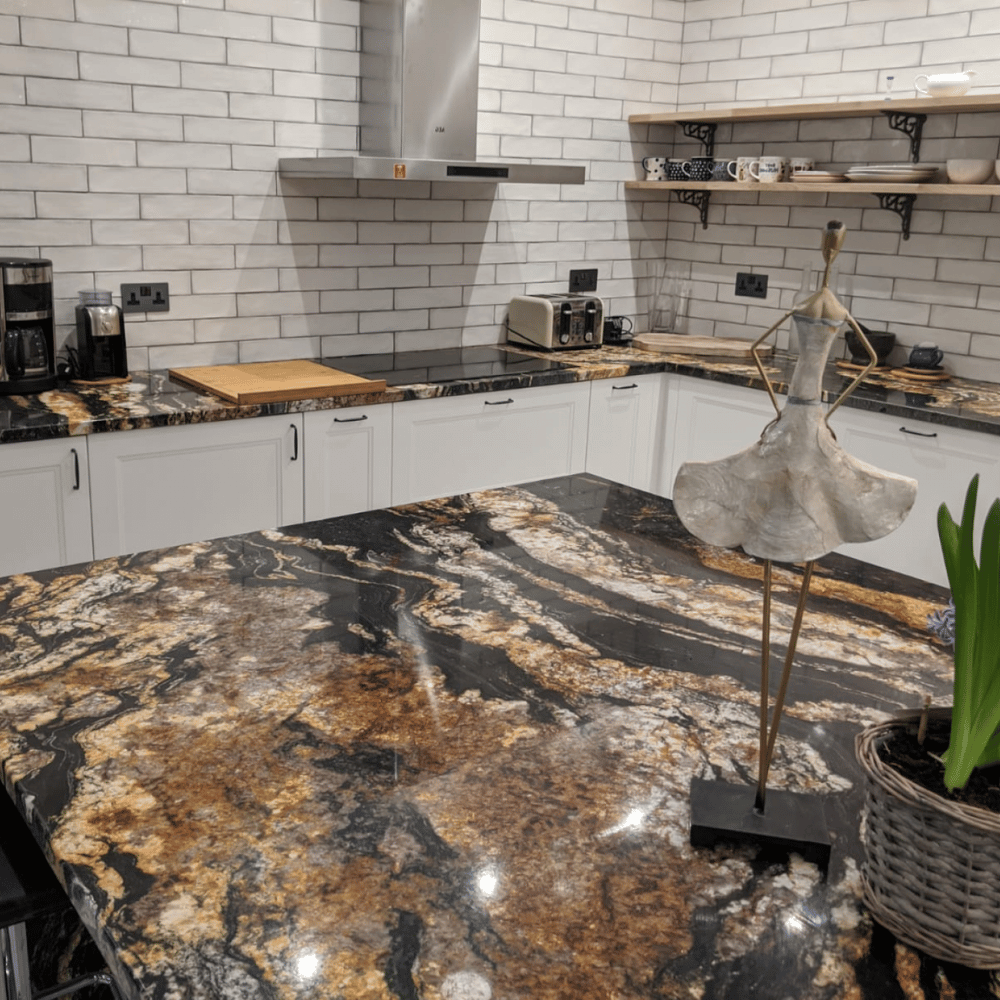 Nos plans de travail en granit noir Black Fusion sont façonnés sur mesure, conçus pour s'intégrer harmonieusement à votre espace.