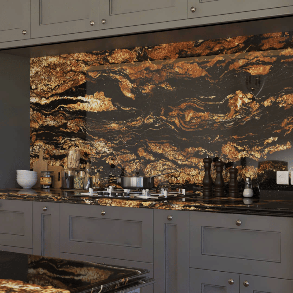 Le granit noir Black Fusion est l'incarnation du raffinement. Sa couleur profonde et ses motifs irréguliers sont une invitation à l'évasion, transformant votre cuisine en un espace de prestige.